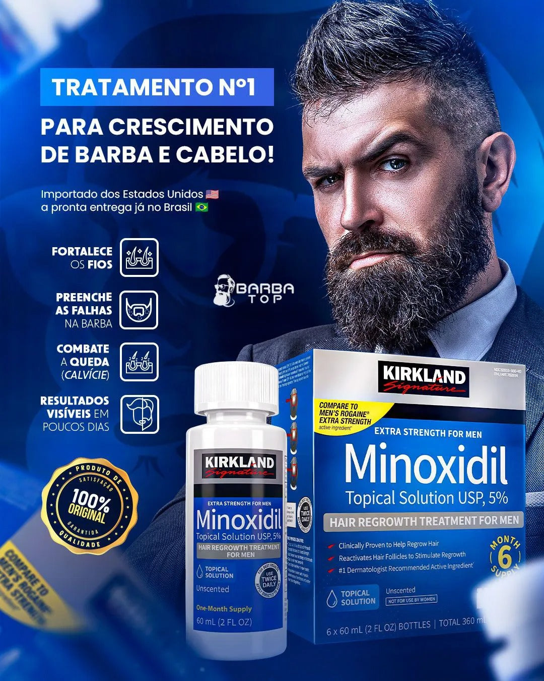 Minoxidil Kirkland 5% Original - Para 1 Mês (1 Frasco de 60ml)